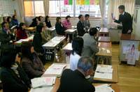 埼玉県志木市立志木小で、2月6日に行われた授業を見つめていたのは、子供ではなく、保護者や地域の人たち。複数の小学校の校長の姿もあった。